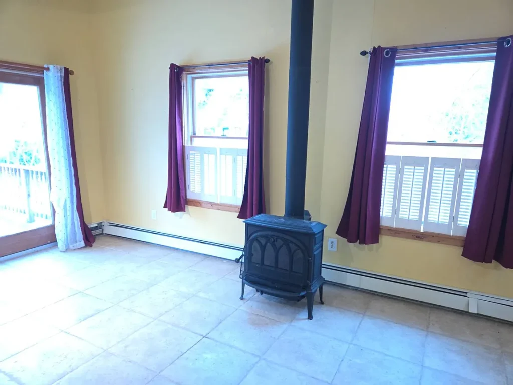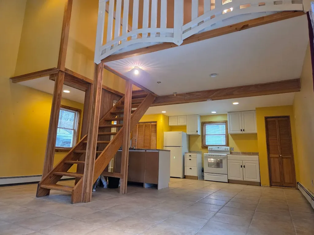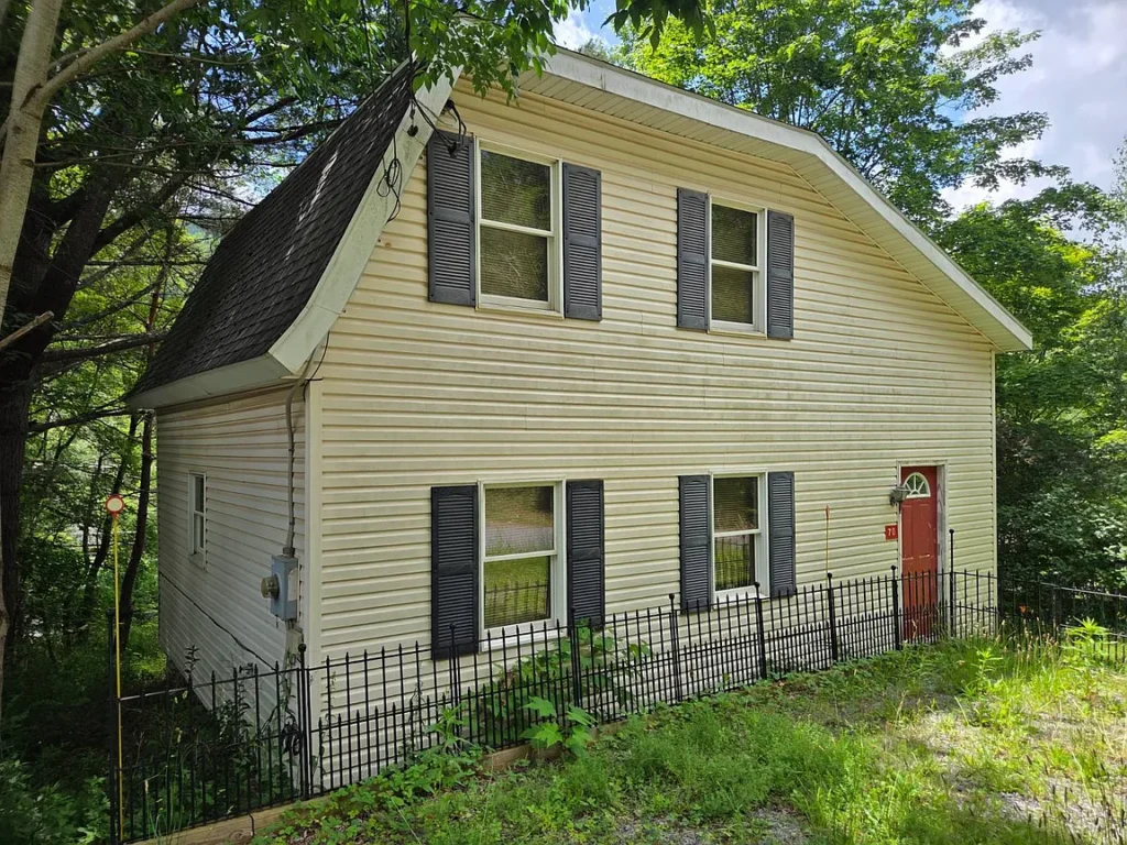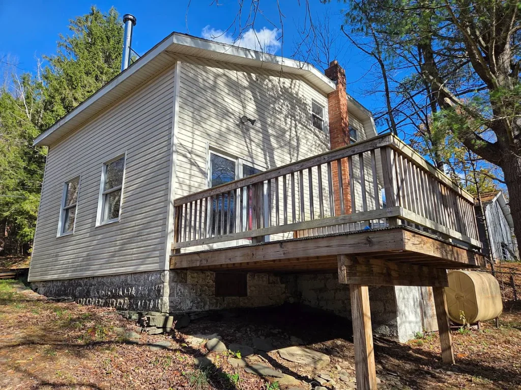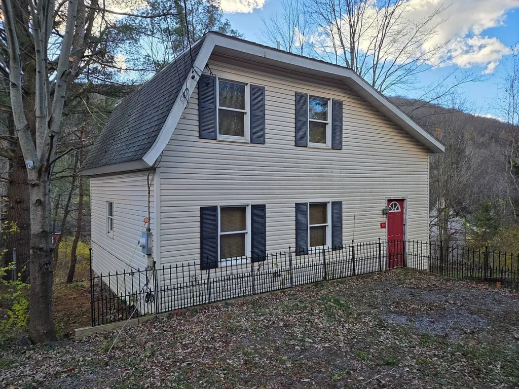 Must see this cozy & comfy 920+/- square foot one bedroom, one bath loft-like home in the heart of ski country just 5 minutes to Belleayre Mountain. Built in the 1950s with recent major alterations, it now boasts an open & airy 18.5′ x 26′ living/dining/kitchen area with handsome carefree Italian tile flooring. After a day on the slopes, relax in front of the airtight woodstove in the bright cathedral ceilinged living area. A sliding glass door leads to a 12.5 x 13′ deck with mountain views. The kitchen area is equipped with ample wood cabinets, smooth-top electric range, refrigerator, an island countertop with stainless sink, pantry closet and utility closet with a 40-gallon electric HW heater and 200-amp electric panel. An open oak staircase leads to the 13.5′ x 16.5′ loft bedroom with hardwood floor and a large full bath with tiled floor and tiled tub surround. The home has a 3-year-old Burnham furnace with an oil-fired Beckett burner for efficient baseboard heat, a 275-gallon oil tank, Village water and Municipal sewer, a concrete block crawl foundation, vinyl siding and asphalt shingle roof. Taxes: $2,403+/- Schedule your viewing soon and be on the slopes for the holidays!