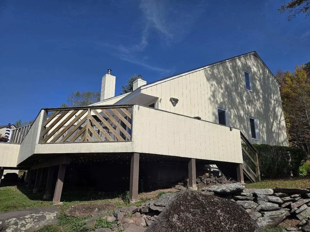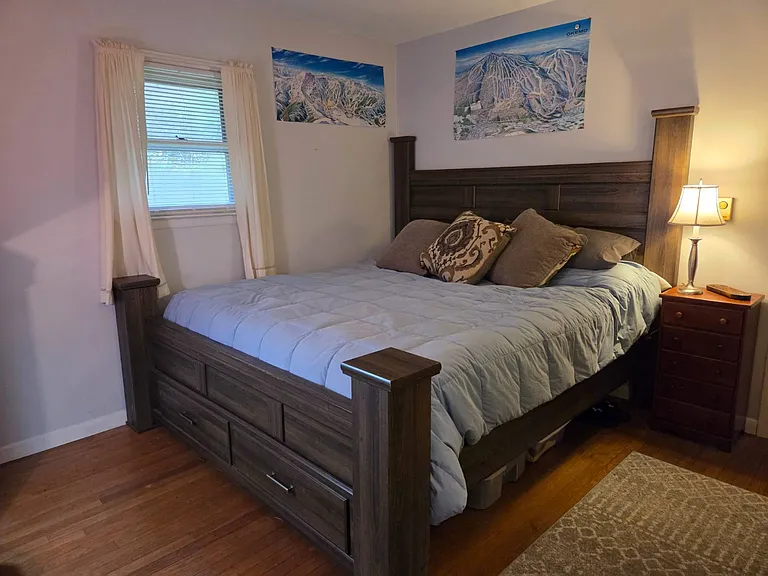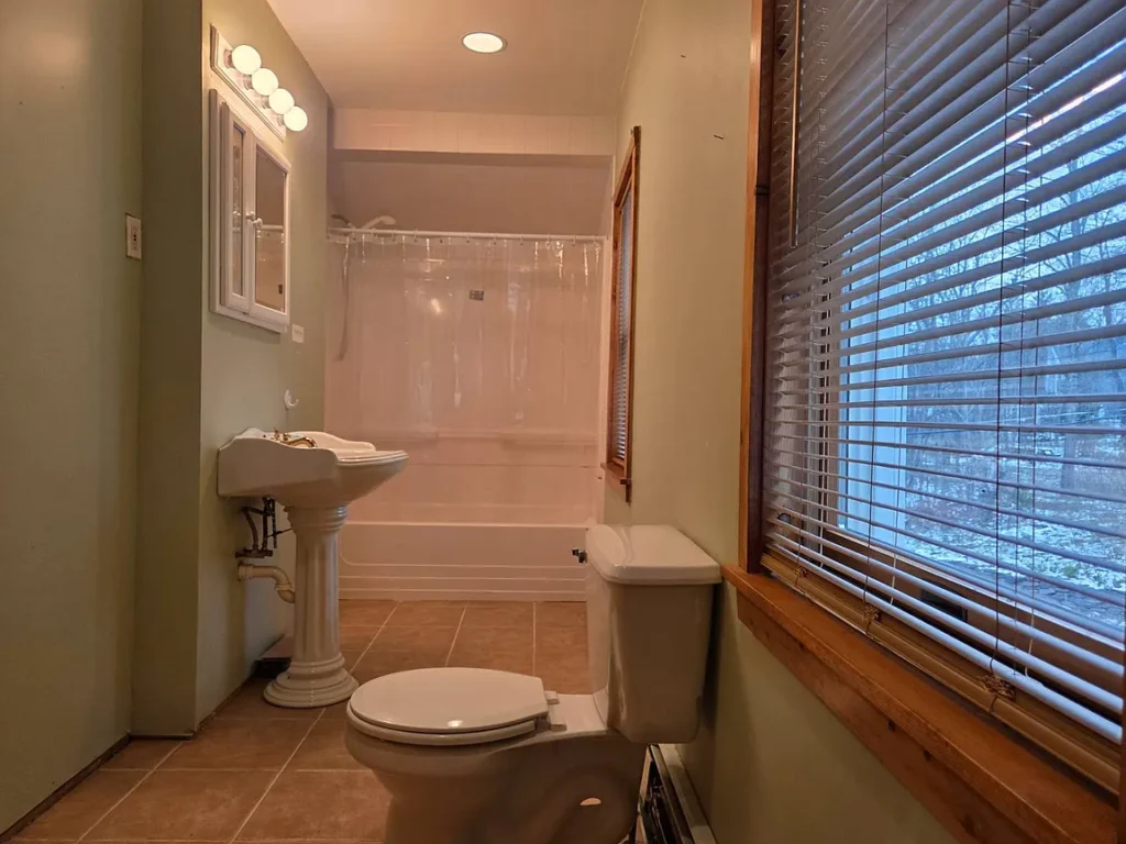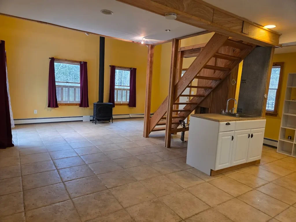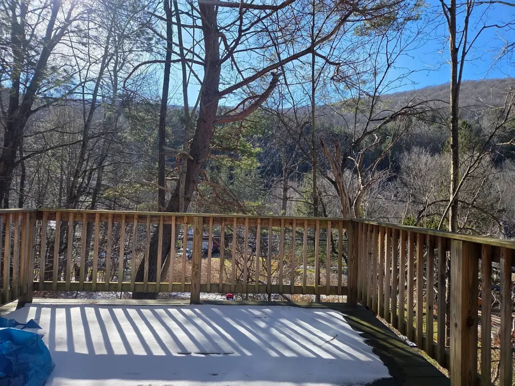 Must see this cozy & comfy 920+/- square foot one bedroom, one bath loft-like home in the heart of ski country just 5 minutes to Belleayre Mountain. Built in the 1950s with recent major alterations, it now boasts an open & airy 18.5′ x 26′ living/dining/kitchen area with handsome carefree Italian tile flooring. After a day on the slopes, relax in front of the airtight woodstove in the bright cathedral ceilinged living area. A sliding glass door leads to a 12.5 x 13′ deck with mountain views. The kitchen area is equipped with ample wood cabinets, smooth-top electric range, refrigerator, an island countertop with stainless sink, pantry closet and utility closet with a 40-gallon electric HW heater and 200-amp electric panel. An open oak staircase leads to the 13.5′ x 16.5′ loft bedroom with hardwood floor and a large full bath with tiled floor and tiled tub surround. The home has a 3-year-old Burnham furnace with an oil-fired Beckett burner for efficient baseboard heat, a 275-gallon oil tank, Village water and Municipal sewer, a concrete block crawl foundation, vinyl siding and asphalt shingle roof. Taxes: $2,403+/- Schedule your viewing soon and be on the slopes for the holidays!