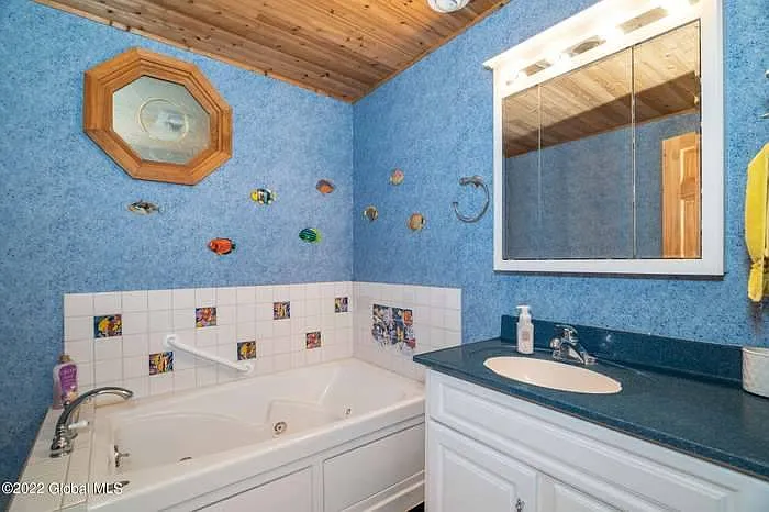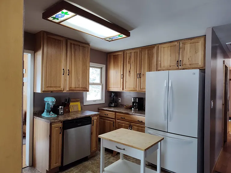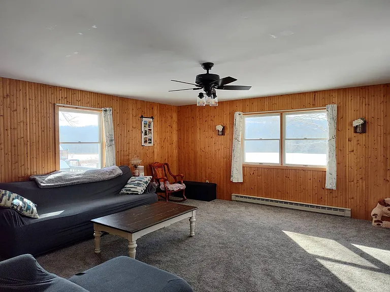 WITH MOUNTAIN VIEWS IN THE NORTHERN CATSKILL MOUNTAINS, TOWN OF JEFFERSON, SCHOHARIE COUNTY. Only 3 hours from the George Washington Bridge. Skiing is only 45 minutes away at Hunter, Windham and Plattekill Mountains. Minutes to Mine Kill State Park for hiking, swimming & boating, Stamford Golf Club, Howe Caverns, Secret Caverns, farm stands and numerous popular restaurants and cafes. This home features a 3-seasons sunroom and decks with mountain views, a brick fireplace with a pellet stove insert in the large 13′ x 23′ dining room with cathedral ceilings and two sets of sliding glass doors, a homey 18′ x 18′ living room with pine plank walls and lots of windows, handsome hickory cabinets highlight the fully equipped kitchen with GE propane gas range, GE microwave, Kenmore refrig/freezer, Frigidaire dishwasher, beautifully updated porcelain tiled full bath w/linen closet, 11′ x 12′ primary bdrm suite with full Jacuzzi bath, 2 guest bedrooms – 10′ x 11′ and 11′ x 11′, office with large closet. Flooring is hardwood, carpeting and linoleum. Mudroom leads to the oversized one-car garage w/automatic garage opener. Electric baseboard heat plus a propane gas heater. There’s a concrete block partial full basement with a Speed Queen washer & Maytag dryer, Reliance 50-gallon electric hot water heater, Challenger well pressure tank & 200 amp electric service. The home is vinyl sided and has a metal roof with seamless gutters. Well & septic. Built in 1974. Taxes: $5113 +/-.